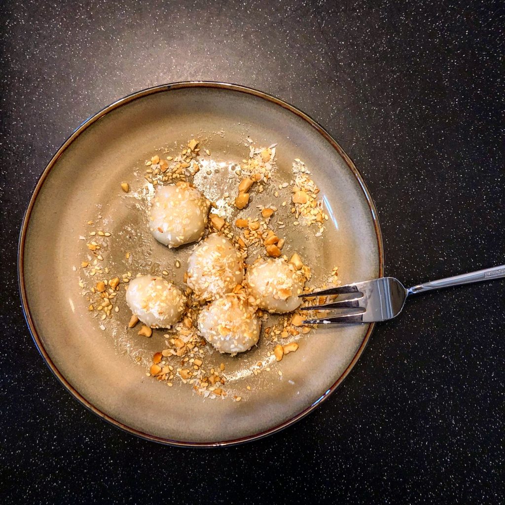This is absolutely one of my favourite classic Cantonese desserts! The most important part of this recipe is not the crunchy and sweet toppings, but the sweet broth that you cook the dumplings in. Instead of using plain water, I add ginger and brown sugar to the broth, which gives a wonderful flavour to the dumplings. Be sure not to skip this part!